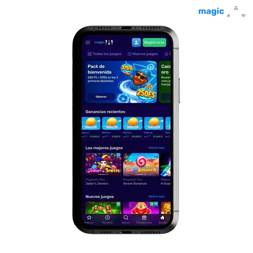 La aplicación oficial de Magic365 está disponible para dispositivos Android e iOS. Fue desarrollada para ofrecer una experiencia de apuestas y casino completa desde el celular, sin necesidad de usar el navegador.
